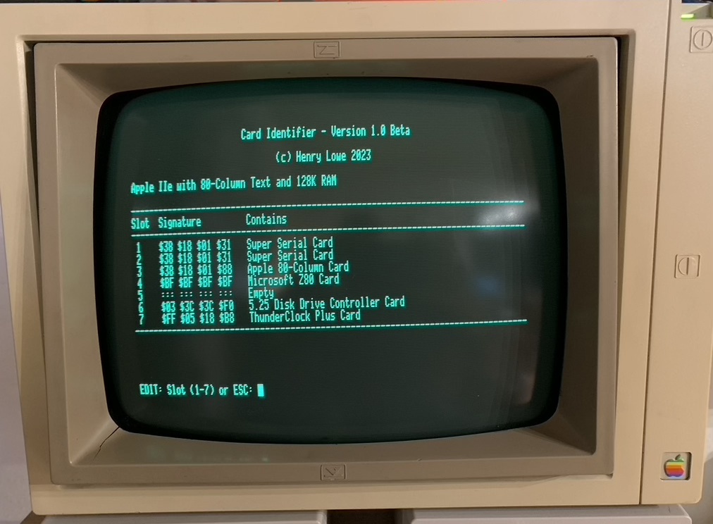I recently acquired a vintage USI PI3 amber monitor (Model VM-1230, manufactured in 1982). The screen has no burn-in and it works well with the Videx 80 Column card in my Franklin Ace 1000. In the photo below the text looks yellow but in reality it is amber/orange.